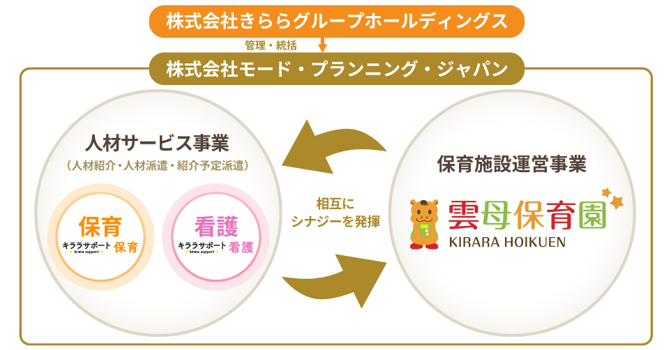 「輝く大人が輝く子どもを育てる」を理念に、全国で認可・認証保育所「雲母保育園」を運営しています。雲母保育園は、各園に配置する管理栄養士・栄養士を中心とするこだわりの食育をはじめ、保護者との信頼関係構築に向けた5分間対話等の取り組みを通し、子どもたちにとってより良い保育を実践しています。 詳しくはこちら>